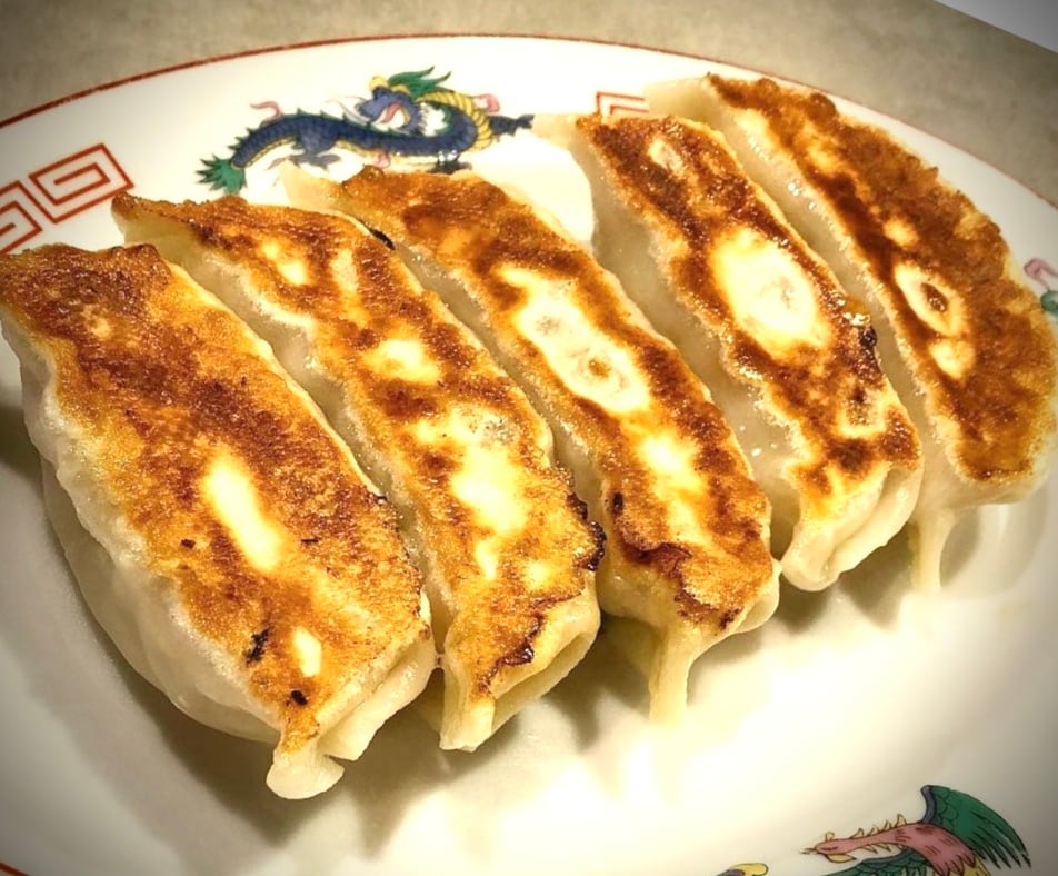 朝挽きの粗挽き豚肉と背脂にキャベツ・白菜・玉ねぎなどの野菜がたっぷりの餡に薬膳の香りがジュワッーと口の中で広がる病みつきになる味わいの餃子